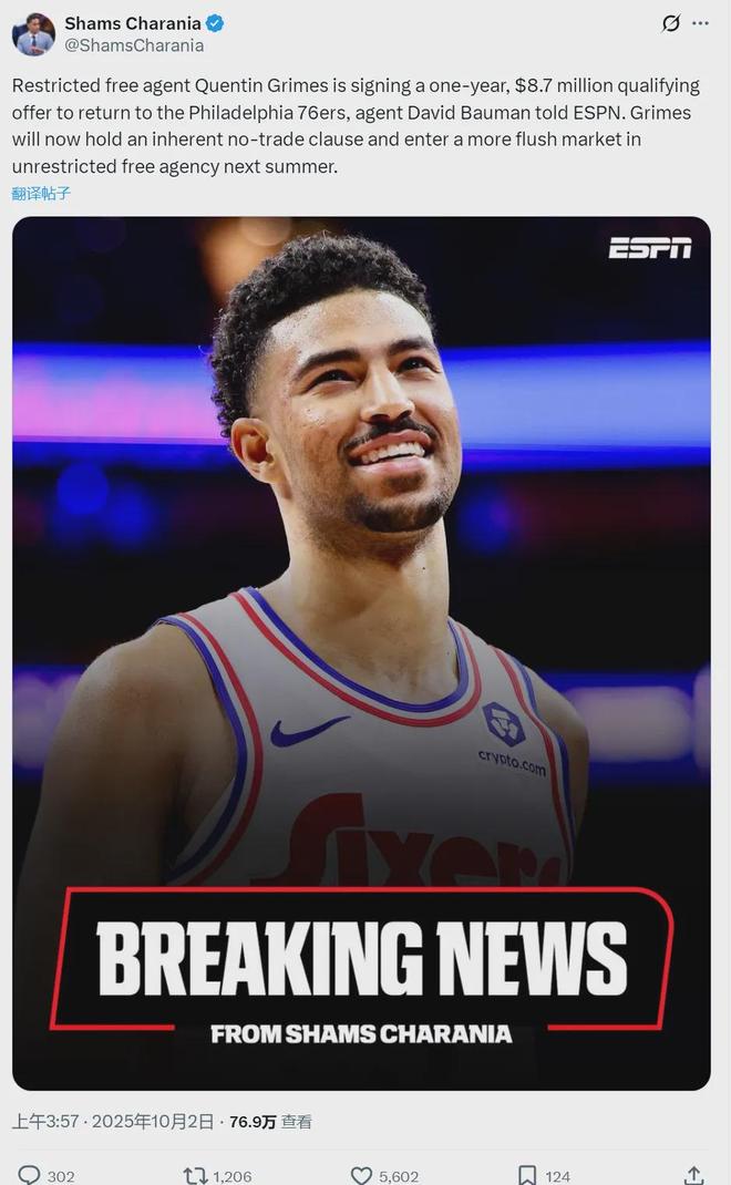 44分+46分,拒絕4年3900萬(wàn)美金!76人不講武德,格萊姆斯未來可期